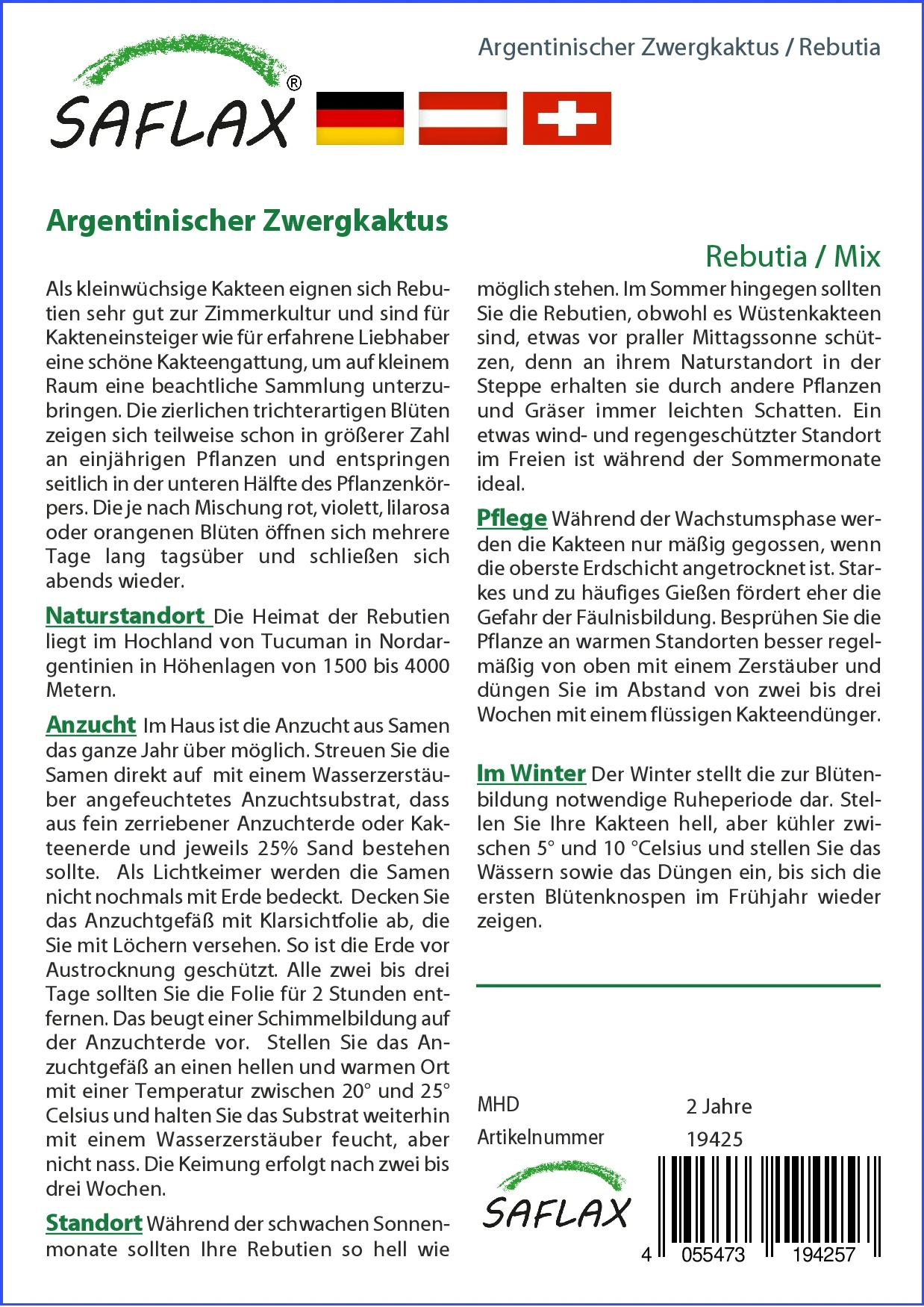 Die Heimat der Rebutien liegt im Hochland von Tucuman in Nordargentinien in Höhenlagen von 1500 bis 4000 Metern.