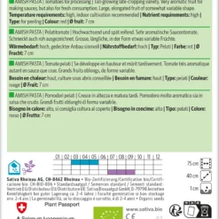 Hochwachsend und spät reifend. Sehr aromatische Saucentomate. Schmeckt auch roh ausgezeichnet. Große, längliche, in der Form etwas variable Früchte.